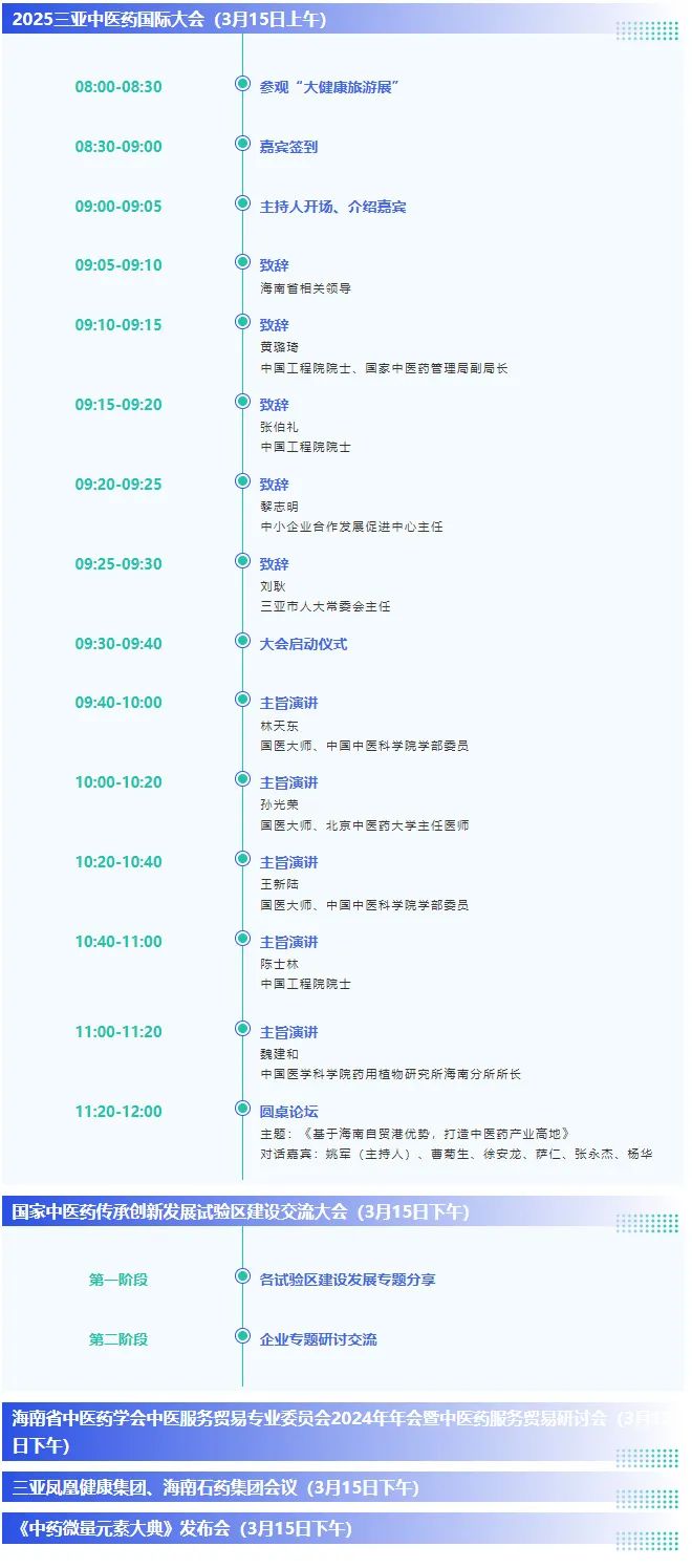 2025三亞中醫藥國際大會暨大健康旅游展將于2025年3月14-16日在三亞市舉辦。本次大會旨在搭建一個專業化、國際化的交流與合作平臺,匯聚中醫藥領域的專家學者、行業精英、醫療機構及優秀企業,共同探討弘揚優秀中醫傳統文化、加快中醫藥領域高質量發展的新路徑,展示中醫藥在促進“健康中國”建設工作的最新成果與前沿趨勢。